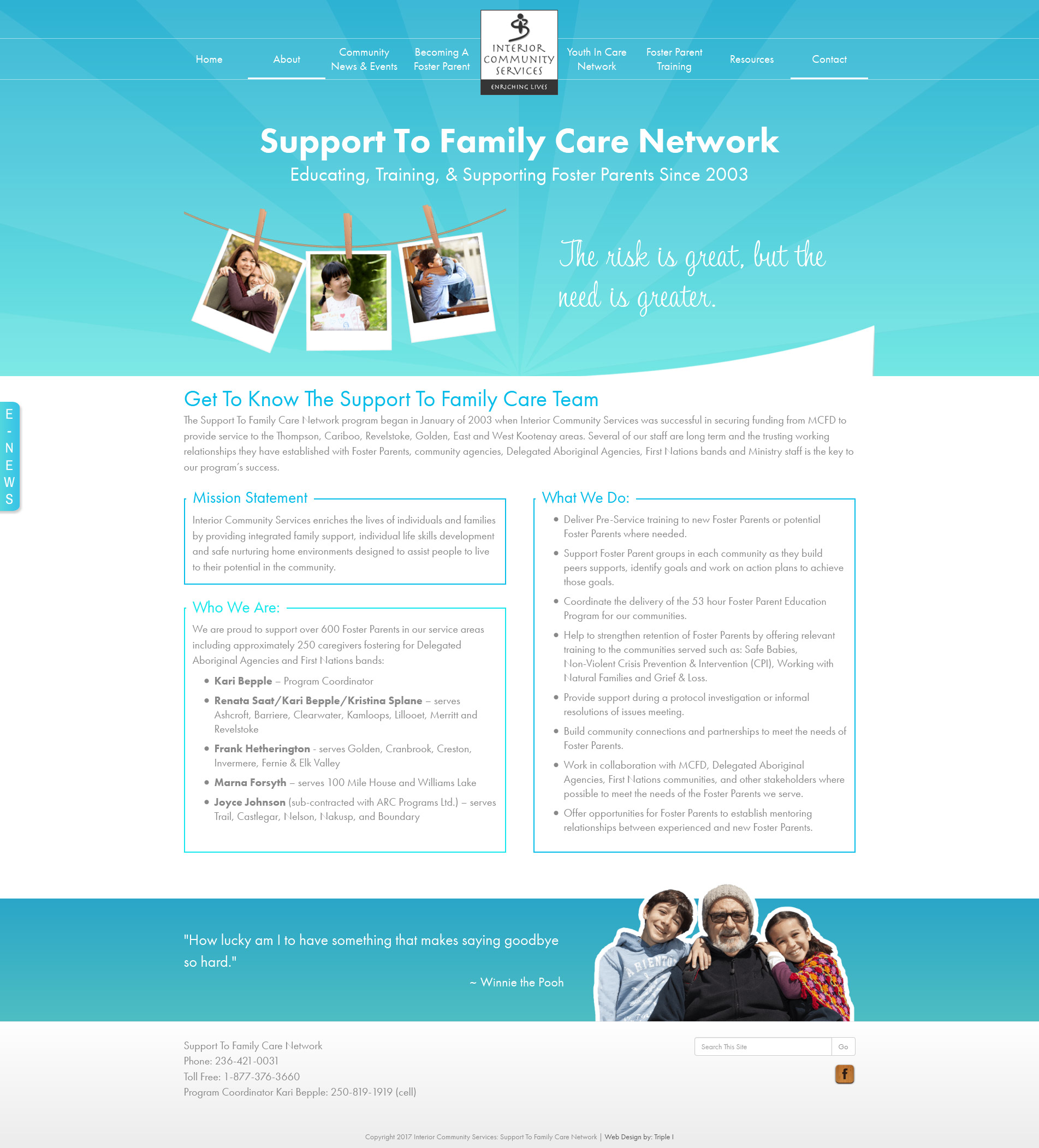 - Resource & Information Hub: Provide a hub for foster parents in the Interior of BC where they can find resources and support.